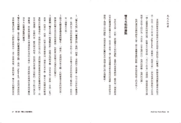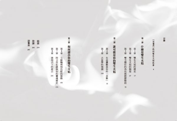 「假使你正在搜尋答案,想知道為什麼與某人的連結感覺截然不同,已經顛覆了你的人生,那麼本書值得一讀。它簡單解釋雙生火焰連結的方式令人印象深刻,將會為你的心智和靈魂帶來平靜。」 ——安東妮・瑪麗(Antoinette Marie) ,演員及編劇