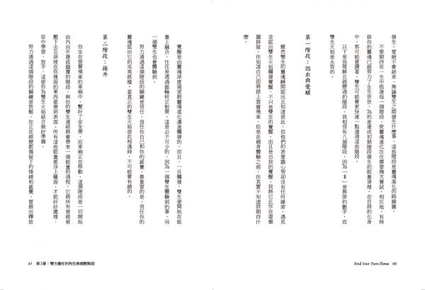 彼此支持去超越各自的極限,達成各自的目標。在這階段,雙生往往會暫時分離,為的是在自己的人生中找到立足點。