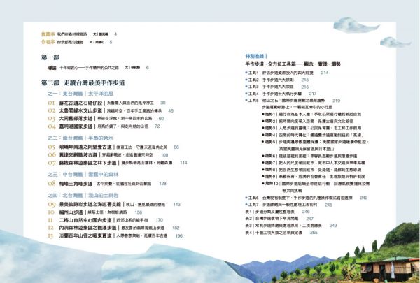 特別收錄【手作步道・全方位工具箱】,從觀念、規劃到實踐,提供與自然共生的最佳導引;並與國際同步,完整引介國際間最新的步道運動趨勢: