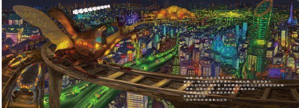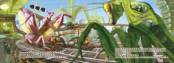 一路上轉乘飛越樹梢的斑透翅蟬輕軌、深入地底的蚯蚓地下鐵,每一種都是昆蟲變身的交通列車!旅途中驚險不斷:兩輛螳螂特快車正面對決阻擋了交通,只得改搭地底電車;在黑暗中蠕動前進時,緊急按鈕的燈光突然亮起!