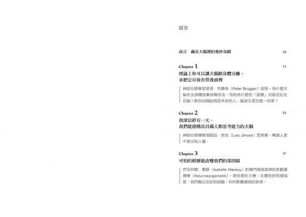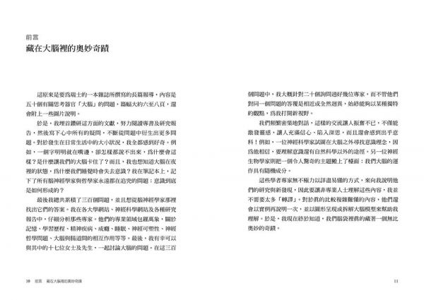 本書作者為了探索人類的大腦,訪問了17位世界頂級的神經科學家,