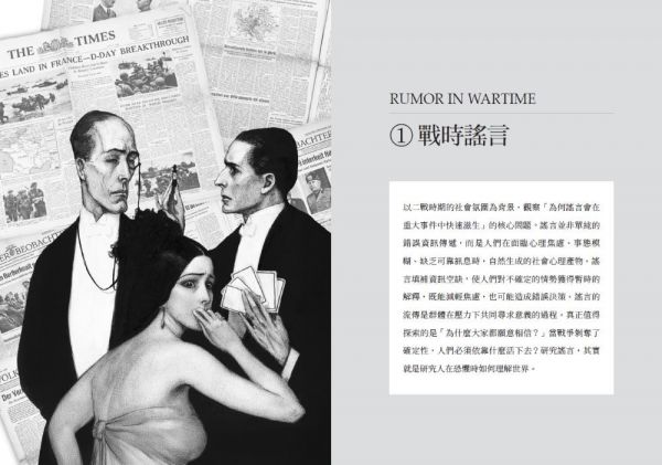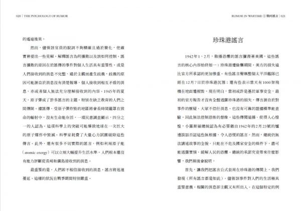 《謠言心理學》不僅是一部描繪人性與群體心理的經典之作,也是研究訊息傳播與謠言形成的不可或缺的指南,值得深入研讀與反思。 |