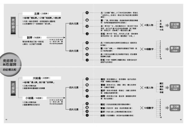 換句話說,這四種本質,奧修禪卡和塔羅牌都一樣具備,只是使用的象徵符號不一樣而已(至於禪卡為什麼用火、水、雲、彩虹來代表這四種本質,在本書中會有詳細說明);只要跟著書中的解析,弄清楚符號背後指向的意義,就可以很清楚地看到奧修禪卡與塔羅牌之間的同質性。