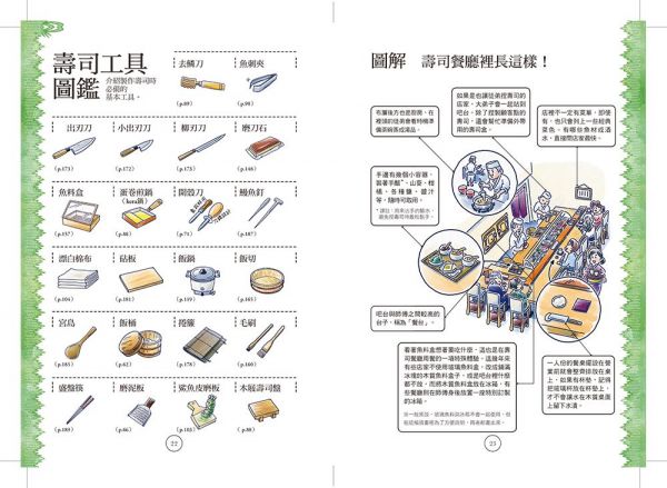 什麼是「親方」、「鮮度君」、「女郎壽司」?握壽司、押壽司、太卷壽司之間有什麼不同?這些令人好奇的「壽司語」,都可以在這本書裡找到。