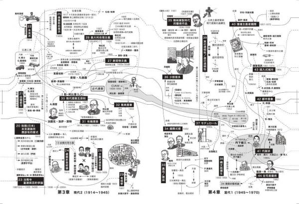 不輸主文的精采資訊,從全書一開始的「建築思想地圖」與「建築思想相關年表」,理解思潮發展脈絡。各章之間還穿插「建築旅行」主題專欄。至於本書最後的附錄「建築書的影響力」以及「拓展建築思想的世界/日本建築家」,特別介紹彙整了擁有強大影響力的建築著作與建築家群像。