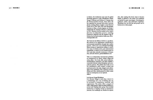 作者以藝術策展和工作坊的豐富經驗,特別設計多種學習方案與工作坊:從「菌絲冥想」到讀書小組,從仿生練習到跨學科對話、野外採集⋯⋯邀請讀者體驗「真菌化」過程,並將真菌的教誨真正「激活」到社群與組織中。